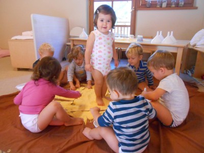 Anche un semplice travaso può diventare un gioco coinvolgente che permette al bambino di sperimentarsi in libertà! Stamattina i bimbi grandi del nido hanno deciso di giocare con la farina gialla, usando cucchiai, ciotoline ed imbuti di vari materiali. L’educatrice ha predisposto il gioco su due livelli, a terra e sul tavolo per racchiudere tante possibilità di esperienza.