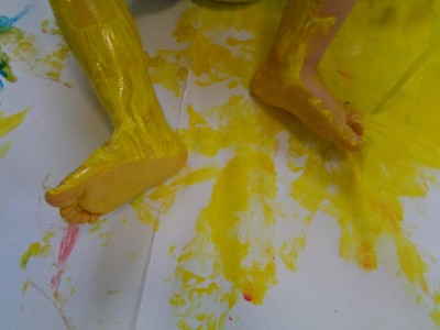 Tra i 10 diritti naturali dei bambini c’è anche il diritto a sporcarsi, a giocare con la sabbia, la terra, l’erba, le foglie, l’acqua, i sassi, i colori. Nella pittura con il corpo i piccoli possono sperimentare un gioco che coinvolge soprattutto il senso del tatto: i colori vengono manipolati, ne viene saggiata la consistenza, vengono spalmati sul corpo per osservare il cambio di tonalità. È un gioco che diverte d emoziona.