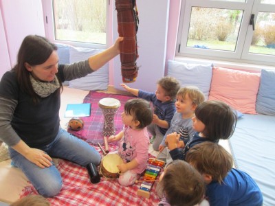 Percussioni, maracas, cembali, nacchere, bastone della pioggia, xilofono sono entrati al nido con la musicista Marika Prandi. I bambini hanno osservato affascinati gli strumenti da cui uscivano suoni così diversi e hanno provato anche loro a suonarli. Il primo appuntamento nell'ambito del progetto "Incontro con i musicisti" è stato un vero successo!