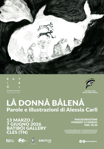 Venerdì 13 marzo alle ore 18.30 presso la Batibōi Gallery (Piazza Municipio 5, Cles) inaugura la mostra “La Donna Balena. Parole e illustrazioni di Alessia Carli”, a cura di Marcello Nebl, e sarà possibile visitarla fino al 7 giugno 2026!